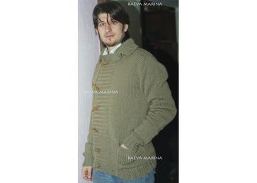 Жакет выполнен спицами из полушерстяной пряжи.