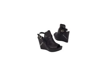 Босоножки Andrealattanzi из перфорированной кожи на танкетке, каблук 12см. None