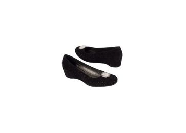 Туфли замшевые украшенные стразами темного цвета, на скрытой танкетке None