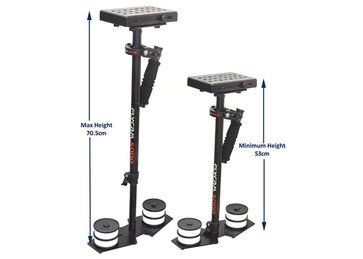 Flycam 5000 PRO Flycam Steadycam 5000 Pro (аналог Glidecam 4000 pro) является системой стабилизации для компактных видео и кинокамер весом 1 кг. - 4,5 кг. Система стабилизации дает возможность оператору свободно двигаться при съемке, не опасаясь за неустойчивость камеры, смазывание или "дрожание" кадра. Flycam Steadycam 5000 Pro обеспечивает постоянный горизонтальный и вертикальный баланс камеры, позволяя снимать четкие и изящные кадры при движении вокруг снимаемого объекта, ходьбе вниз и вверх по лестнице, параллельном перемещении за движущимся объектом, движении по неровной местности и даже беге. Балансирующая рукоятка крепится к свободно вращающемуся шарниру, что позволяет руке оператора двигаться вверх, вниз, из стороны в сторону, не прикасаясь к камере. Движение вверх-вниз компенсирует тряску и колебания камеры. Накамерная платформа также сдвигается взад-вперед, из стороны в сторону, что позволяет быстро настраивать горизонтальную балансировку камеры. Вертикальную балансировку можно отрегулировать, подобрав необходимое количество балансировочных дисков-грузиков. Правильно сбалансированная камера плавает в руке оператора, послушная его движениям. Вес без балансировочных грузиков - 1640 грамм. В комплекте 16 балансировочных грузиков.