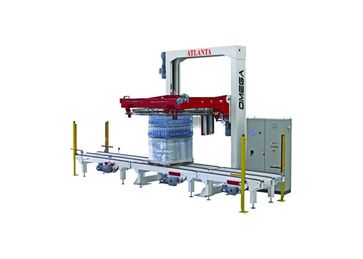 ATLANTA STRETCH OMEGAпроизводства ATLANA (Италия)- самый быстрыйв мире автоматический паллетоупаковщик, с кареткой, вращающейсявместе с кольцом вокруг паллеты с грузом.