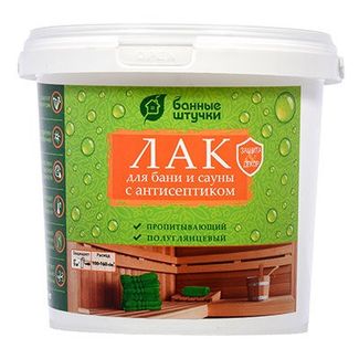 - Лак для бани и сауны с антисептиком Банные Штучки 09 кг бесцветный 34995 по выгодной цене 515 р. руб.;