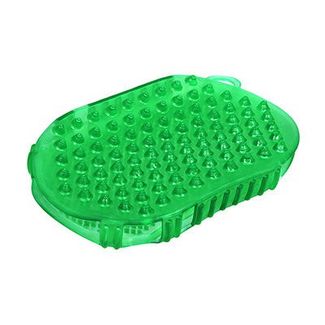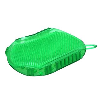 Массажёр имеет две поверхности при помощи плоскости с мелкими нежными зубчиками осуществляется мягкое отшелушивание ороговевших клеток (пилинг). Кожа становится мягкой и эластичной. Вторая поверхность с более твёрдыми и крупными зубцами применяется для антицеллюлитного массаж. Материал: пвх. None