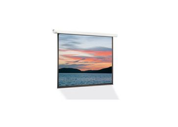 Простой надежный экран с электроприводом, предполагает установку на стену или на потолок, причем корпус может быть как на виду, так и спрятан за потолочные фальш-панели. None