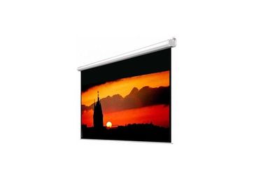 Простой надежный экран с электроприводом, предполагает установку на стену или на потолок, причем корпус может быть как на виду, так и спрятан за потолочные фальш-панели. None