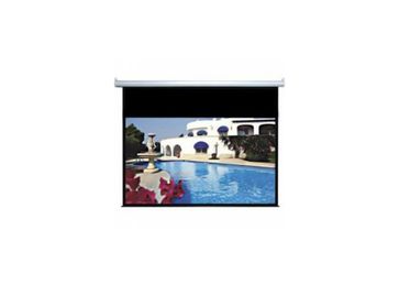 Простой надежный экран с электроприводом, предполагает установку на стену или на потолок, причем корпус может быть как на виду, так и спрятан за потолочные фальш-панели. None