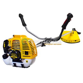 Двигатель 2-х тактный, мощность двигателя 0.9 кВт/ 1.22 л.с., рабочий объем цилиндра 32.6 см3, рукоятка U-образная, штанга прямая, диаметр лески 2.4 мм, емкость топливного бака 0.95 л, в комплекте: триммерная головка, нож, ранцевая подвеска, вес 6.2 кг. None