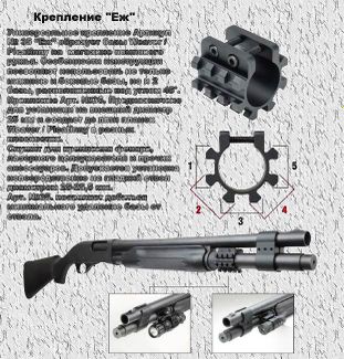 Данное крепление аналогично известному и хорошо зарекомендовавшему себя креплению NcStar MT12G. База Weaver / Picatinny "Еж" позволяет оснастить практически любое отечественное или импортное помповое ружье, имеющее внешний диаметр магазина 25 мм. базой Weaver / Picatinny для крепления подствольных фонарей лазерных целеуказателей и др. аксессуаров на быстросемную основу. Для установки следует выкрутить болты, затем - насадить крепление. Далее - разместите крепление в нужном Вам месте, установите болты и заверните их так, чтобы крепление не проворачивалось и не скользило по стволу.