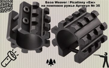 Крепление (база Weaver / Picatinny) Артикул № 35, предназначено для установки на подствольный магазин гладкоствольного ружья, имеющий внешний диаметр 25 мм.