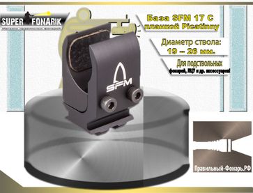 База Picatinny для гладкоствольного и нарезного оружия, укороченная, «SFM 17» — разработана для крепления подствольных фонарей на ствол отечественных и импортных ружей.