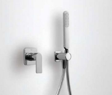 Душевая система с однорычажным встроенным смесителем с затвором и регулятором потока Настенный держатель. Съемный душ с антиизвестковым покрытием. Шланг SATIN Скрытый монтаж None