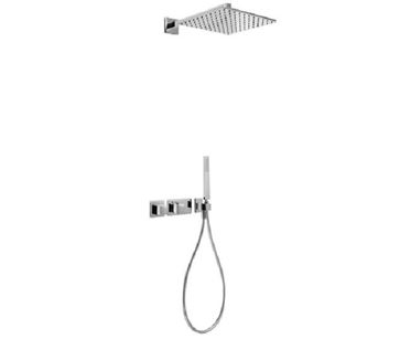 Встроенная термостатическая система для душа с затвором и регулятором потока. (2 канала), включая встраиваемый корпус термостата Несъемный душ 300x300 мм. Латунь. Съемный душ с антиизвестковым покрытием. Шланг SATIN Скрытый монтаж Покрытие: хром None