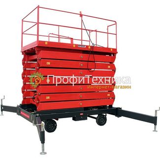 Несамоходный, сеть + АКБ, двигатель электрический 220 В, мощность 4.0 кВт, аккумулятор 4/165 В/Ач, грузоподъемность 300 кг, высота подъема платформы 13.0 м, размер платформы 2350x1600 мм, вес 3300 кг. None