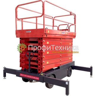Несамоходный, двигатель электрический, мощность 2.2 кВт, грузоподъемность 500 кг, высота подъема платформы 9.0 м, АКБ 100 Ач, размер платформы 2150x1140x1100 мм, вес 1490 кг. None
