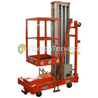 Несамоходный, двигатель электрический, мощность 2 кВт, грузоподъемность 125 кг, высота подъема платформы 8.0 м, размер платформы 650х600 мм, вес 380 кг. None