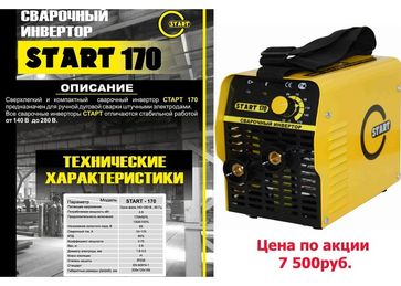 - Сварочный инвертор Start 170 по выгодной цене 7 500 р. руб.;