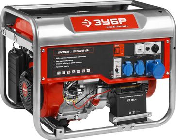 - Бензиновый генератор с электростартером, 5500 Вт, ЗУБР по выгодной цене 61 360 р. руб.;