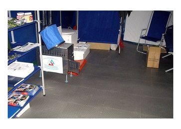 Модульное напольное покрытие из ПВХ "УНИПОЛ" с фактурой поверхности "Зерно", предназначено для быстрого монтажа прочного технического пола на складе, в производственном цехе завода, автосервисе, депо, личном гараже или в гаражном боксе автопредприятия.