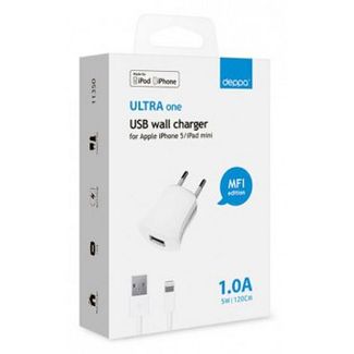 11350 СЗУ USB 1А, дата-кабель с разъемом 8-pin для Apple (MFI), белый, Deppa