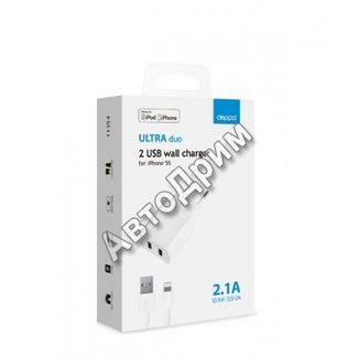- 11355 СЗУ 2 USB 2.1А, дата-кабель 8-pin для Apple (MFI), черный, Ultra, Deppa в каталоге Промышленные зарядные устройства в Москве;
