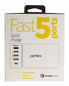 - Сетевая зарядная станция на 5 USB портов Perfeo Fast 5 (1* QC 3.0, 3* Smart, 1* Type-C), белая по выгодной цене 1 250 р. руб.;