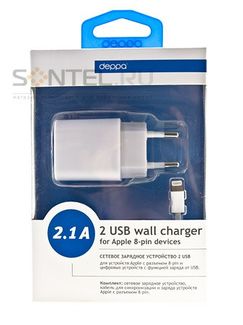- Сетевое зарядное устройство с 2-мя USB + кабель для iPad 4, iPhone 5 2100mA, белое Deppa по выгодной цене 720 р. руб.;