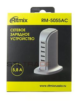 - СЗУ с 5 USB Ritmix RM-5055ac 5.8A белый по выгодной цене 790 р. руб.;