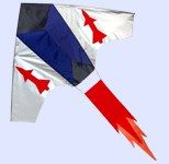 Простой воздушный змей. Размер 160х75см., длина леера 30м. Материал - армированный нейлон таффетаR/S. Каркас из стеклопластикового стержня. Рассчитан на ветер от 3 до 14 м/сек. Воздушные змеи