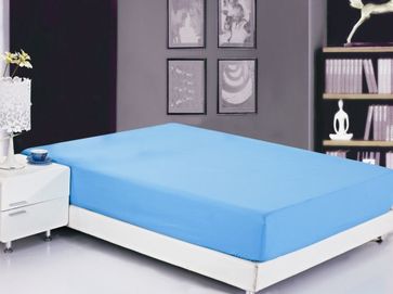 Простыня на резинке сатин 200*220 см голубая Valtery PRC-R-14-200