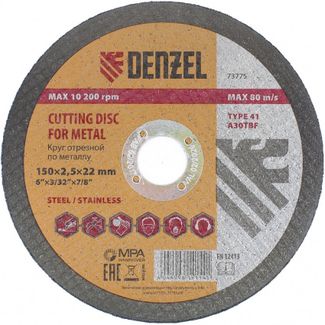 - Круг отрезной по металлу, 150 х 2,5 х 22 мм DENZEL по выгодной цене 74 р. руб.;
