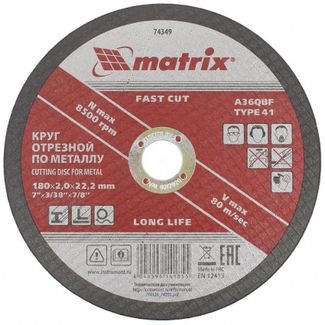 - Круг отрезной по металлу, 180 х 2,0 х 22 мм MATRIX по выгодной цене 66 р. руб.;