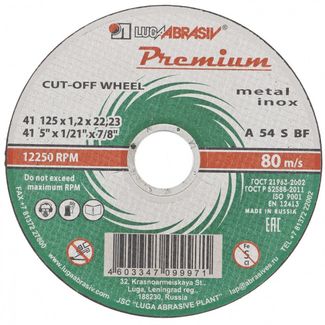 - Круг отрезной по металлу+нерж., 125 х 1,6 х 22 мм, ПРЕМИУМ (Луга) в каталоге Расходные материалы для диагностического оборудования в Москве;