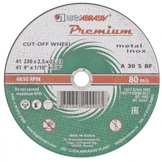 - Круг отрезной по металлу+нерж., 230 х 2,5 х 22 мм, ПРЕМИУМ (Луга) в каталоге Расходные материалы для диагностического оборудования в Москве;
