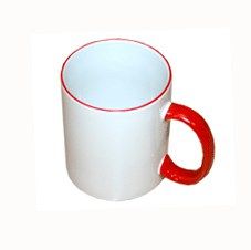 Кружка под сублимацию для нанесения логотипов, изображений, фотографий методом термопереноса (термотрансфера) белая с красной ручкой и ободком. Диаметр 80 мм, высота 95 мм. Заказ кратно упаковке 36 шт. Вес 13,5 кг. None