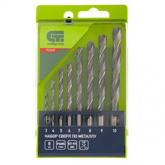 - Набор сверл по металлу, 3-10 мм, 8 шт., Р6М5, пластиковый кейс СИБРТЕХ по выгодной цене 422 р. руб.;