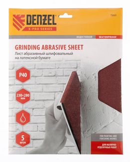 - Шлифлист на бумажной основе, P 40, 230 х 280 мм, 5 шт., латексный, водостойкий DENZEL по выгодной цене 117 р. руб.;