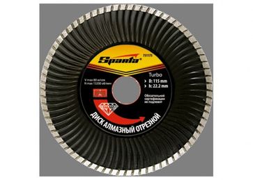 - Sparta отрезной Turbo, 230 х 22,2 мм, сухая резка 731275 по выгодной цене 398 р. руб.;
