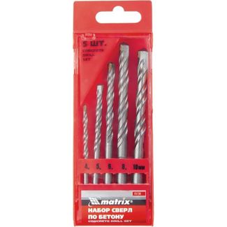 - Набор сверл по бетону, 4 - 5 - 6 - 8 - 10мм, пластиковый кейс MATRIX по выгодной цене 173 р. руб.;