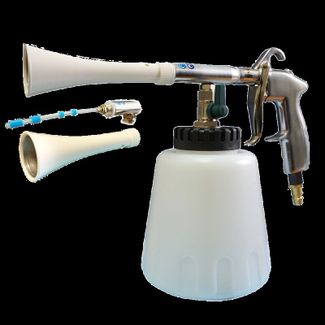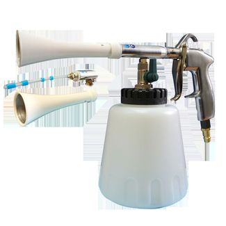 Аппарат для химчистки торнадор С-10, TORNADO Оснащен гибкой пластиковой трубкой малого диаметра, вращающейся посредством сжатого воздуха, через которую распыляется моющая жидкость, что позволяет быстро удалять загрязнения различного происхождения с ткани, велюра, винила и пластика. Идеально подходит для очистки обивки сидений и потолка автомобиля. Позволяет выполнять работы по экспресс химчистке на автомойках и автосервисах. Оснащен аппарат для химчистки регулятором расхода химии. Конструктивные особенности. Малый вес и прочная конструкция; Сбалансированная по весу моющая трубка, достигающая скорости вращения до 3000 об./мин. Воронка с защитной металлической вставкой; Эффективное и быстрое удаление грязи и пыли; Позволяет экономично использовать моющие средства без применения физических усилий, максимально эффективно воздействуя на поверхность; Многофункциональность использования. Возможность проведения работ по сухой и влажной химчистке автомобиля: салона, моторного отсека, колес, ковриков, приборной панели, обивки и потолка; Возможность легкой очистки рабочих элементов распылителя после проведения работ. Скорость свободного об. / мин.: 3000 Расход воздуха л. / мин.: 75 Рабочий диапазон воздуха: 5,0-7,5 Бар Рекомендуемое давление воздуха: 6.2 бар Объем бачка: 1 л Вес кг. 0,67 Размеры: 32 х 26 х 12,9 см Производство: Тайвань ВАЖНО: После КАЖДОГО ИСПОЛЬЗОВАНИЯ, погрузите носик пистолета на 5-7 см в ведро мыльной воды и несколько раз нажмите на спусковой механизм, для того чтобы удалить грязь, застрявшую в конусе, во избежание преждевременного изнашивания инструмента Для работы торнадора требуется большой объем воздуха. Если мощность компрессора и объем ресивера будут недостаточны,