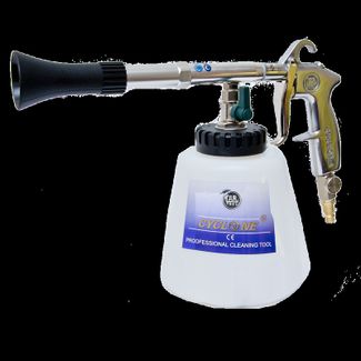 CYCLONE AZ020K-профессиональный аппарат для химчистки (Торнадор), 999361 Позволяет без особых усилий глубоко вычищать любые поверхности. Особенность данного аппарата - износоустойчивость. Циклон можно применять как для локального удаления загрязнений, так и использовать при полной химчистки салона. Единственная деталь, выходящая из строя после длительного использования, это белый шланг 999120. Характеристики: Скорость свободного об. /мин.: 8000 Расход воздуха л. / мин.: 100-270 Потребление состава л. / час: 4,2 Шумность дБ: 89,1 Ввод воздуха: 1 / 4 Давление воздуха: 4,5-6.3 бар Вес кг: 1,280 Размеры (LxH см.): 30x22.5 ИНСТРУКЦИЯ ПО ИСПОЛЬЗОВАНИЮ Профессионального аппарата для химичистки CYCLONE AZ020: Всегда следуйте рекомендациям изготовителя. Очистка ткани. Удалите крупные загрязнения и пропылесосьте область, которая будет очищаться. Поверните клапан воздуха и жидкости в вертикальное положение, для подачи моющего раствора. Держите носик инструмента на расстоянии 3-5 см от очищаемой области. Полностью отпустите спусковой механизм, совершая нахлестывающие движения по области, которая будет очищена. Затем поверните клапан в положение вниз, для использования только воздуха и сухую область. Очистка приборной панели и твердых поверхностей. Рекомендуемое давление воздуха в 6-8 бар. Поверните жидкий клапан в прямое вертикальное положение, и, совершая нахлестывающие движения, распылите область, которая будет очищена. Оставьте очищающий раствор на поверхности 10-15 секунд. Далее очищайте воздухом, повернув клапан в горизонтальное положение, осушая поверхность нахлестывающим