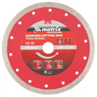 - Диск алмазный отрезной сплошной ф 180х22,2 мм., тонкий, мокрое резание MATRIX Professional по выгодной цене 502 р. руб.;
