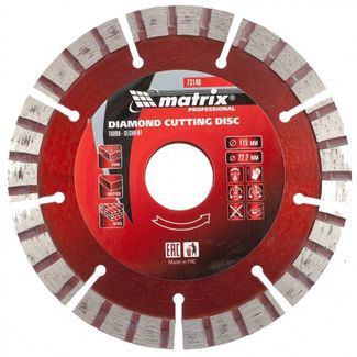 - Диск алмазный отрезной Турбо-сегментный, 115 х 22,2 мм., сухая резка MATRIX Professional по выгодной цене 274 р. руб.;