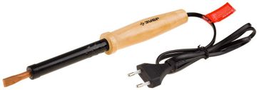 Электропаяльник ЗУБР "МАСТЕР"с деревянной рукояткой и долговечным жалом, форма клин, 100Вт