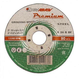 - Круг зачистной по металлу, 115 х 6,0 х 22 мм, ПРЕМИУМ (Луга) по выгодной цене 65 р. руб.;