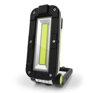 Трехступенчатая регулировка яркости. Водонепроницаемый и ударопрочный корпус стандарта IPX5. Раскладывающаяся на 180° подставка оснащена мощными магнитами и карабином.