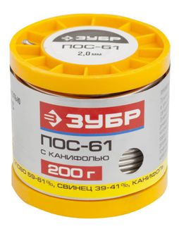 Припой ЗУБР, ПОС 61, трубка с канифолью, 200г, 2мм