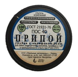 - Припой-катушка 100 гр. ПОС-40 д.1 мм. с канифолью по выгодной цене 114 р. руб.;