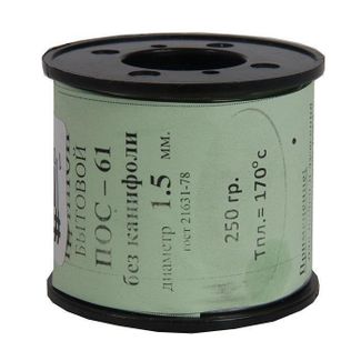 - Припой-катушка 250 г ПОС-61 д. 1,5 мм без канифоли по выгодной цене 700 р. руб.;
