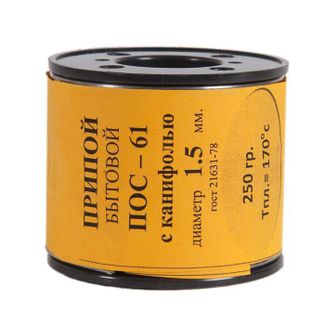 - Припой-катушка 250 г ПОС-61 д. 1,5 мм с канифолью по выгодной цене 700 р. руб.;