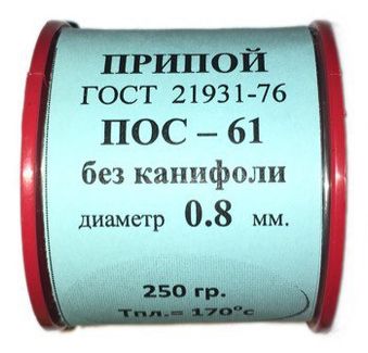 - Припой-катушка 250 гр. ПОС-61 д.0.8 мм. без канифоли по выгодной цене 580 р. руб.;
